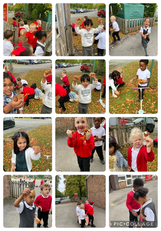 In Reception we have been learning about autumn. The children loved going on a walk around the school grounds to look for signs of autumn. We collected lots of different coloured leaves.
