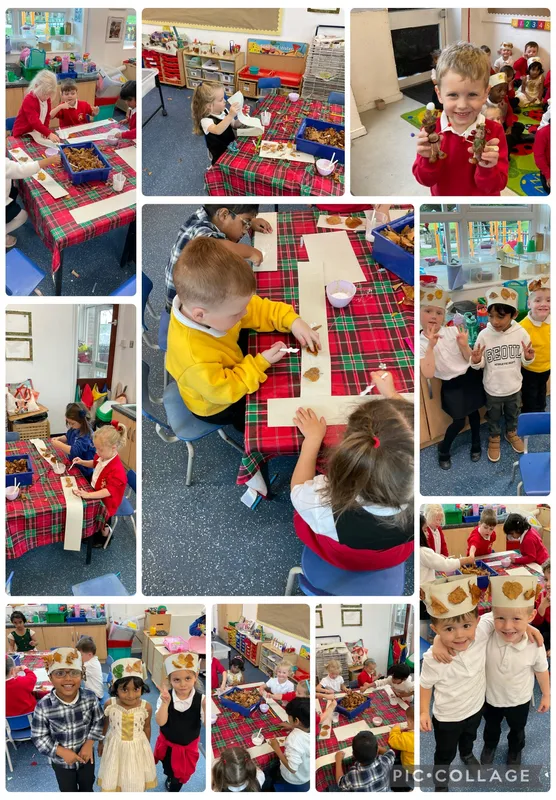 The children also completed some home learning challenges to collect some autumn treasures. We then used these treasures to create autumn crowns and leaf printing. Some of the children created autumn pictures and models. We have been very busy!