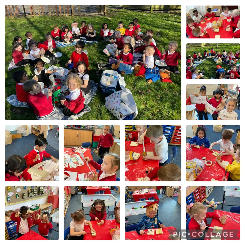 To kick start our Paddington topic the children welcomed Paddington into the Reception class and we had a teddy bears' picnic. We wrote invitations and name labels for our teddies. Then we made marmalade sandwiches to take on our picnic. It was so much fun!